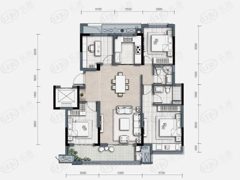 建面约121㎡“四叶草”户型,以客厅为中心,将书房、卧室区隔,各自私密空间相对独立,又互不干扰,在保证自在活动的同时,免去以往设置过道的空间浪费。建面约130㎡“大四居”户型,南向约14.2米的四面宽设计,让生活场景与清风阳光产生更多交集。面宽均在3米以上的阔绰卧室,带来全面的尊贵居住享受。▲笛旸府生活体验馆实景图