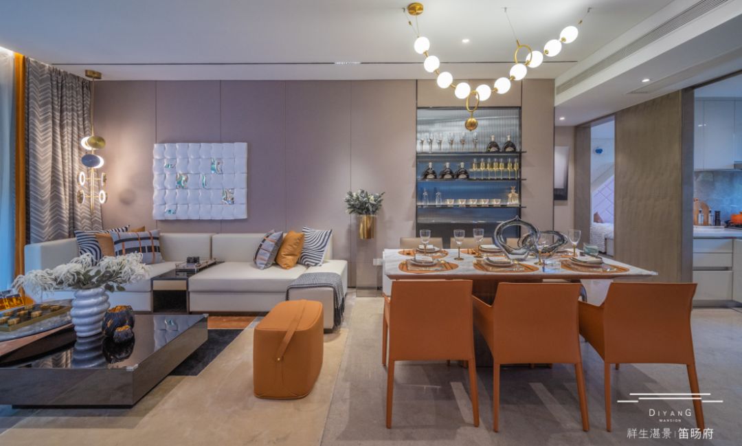 此外,121㎡户型的开间约7米南向大阳台,130㎡户型的开间约7.5米南向大阳台,将统一采用封闭式阳台,围合出一个宁静温馨的生活空间的同时,也避免了业主自行改造的耗时耗力,以及维护了园区整体建筑外立面的统一美观。▲笛旸府样板房实景图