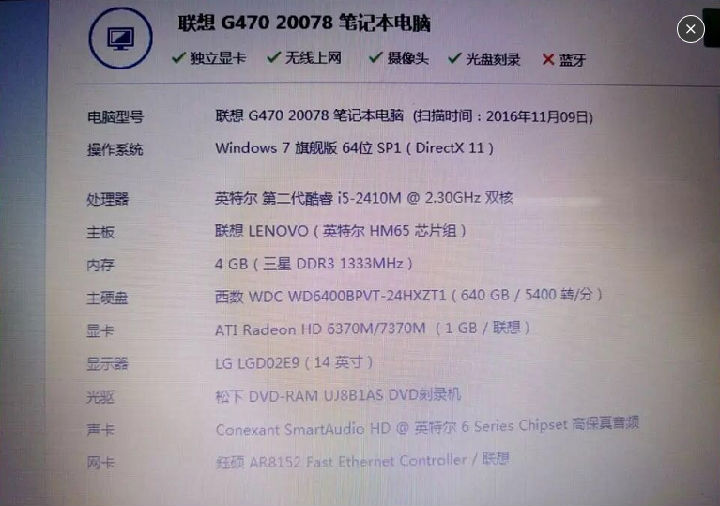 联想G470  i5笔记本便宜卖了 处理器因特酷睿i5 2410   内存三星4G