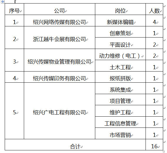 绍兴市新闻传媒中心(传媒集团)根据发展需要,面向社会公开招聘工作人员。现将有关事项公告如下: