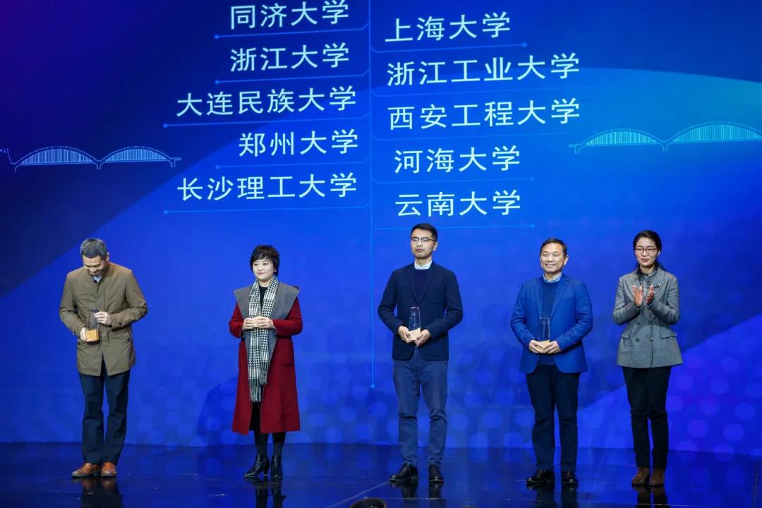 市人民政府副市长顾涛为浙江大学、上海大学等10所高校颁发2020人才输送特别贡献奖。