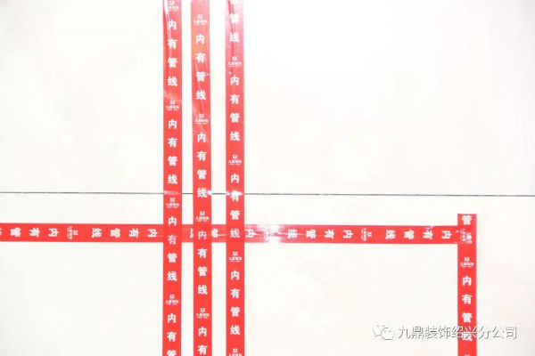 为防止施工中对房屋造成伤害,工地现场使用带有九鼎装饰LOGO的“防护膜”将门窗、地板等保护起来,以确保工地施工安全,给业主在未来带来舒适的居住环境。