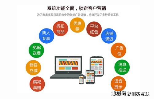 在APP推广方面,创实互联也下足了功夫,为了吸引用户注册,引导用户消费,商城系统开发了9大促销功能:注册赠送、团购、限时抢购、积分换购、新人专享、满减优惠、商品推荐、店铺推荐、品牌动态。此外,平台还有完善的积分等级系统,注册、推荐新用户、在线活跃、消费、签到等都可以获得相应积分。积分可用于平台抽奖也可用于积分换购。